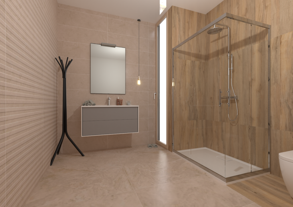 Proposta Trex Ivory (simulazione su bagno 3 x 2 mt)
