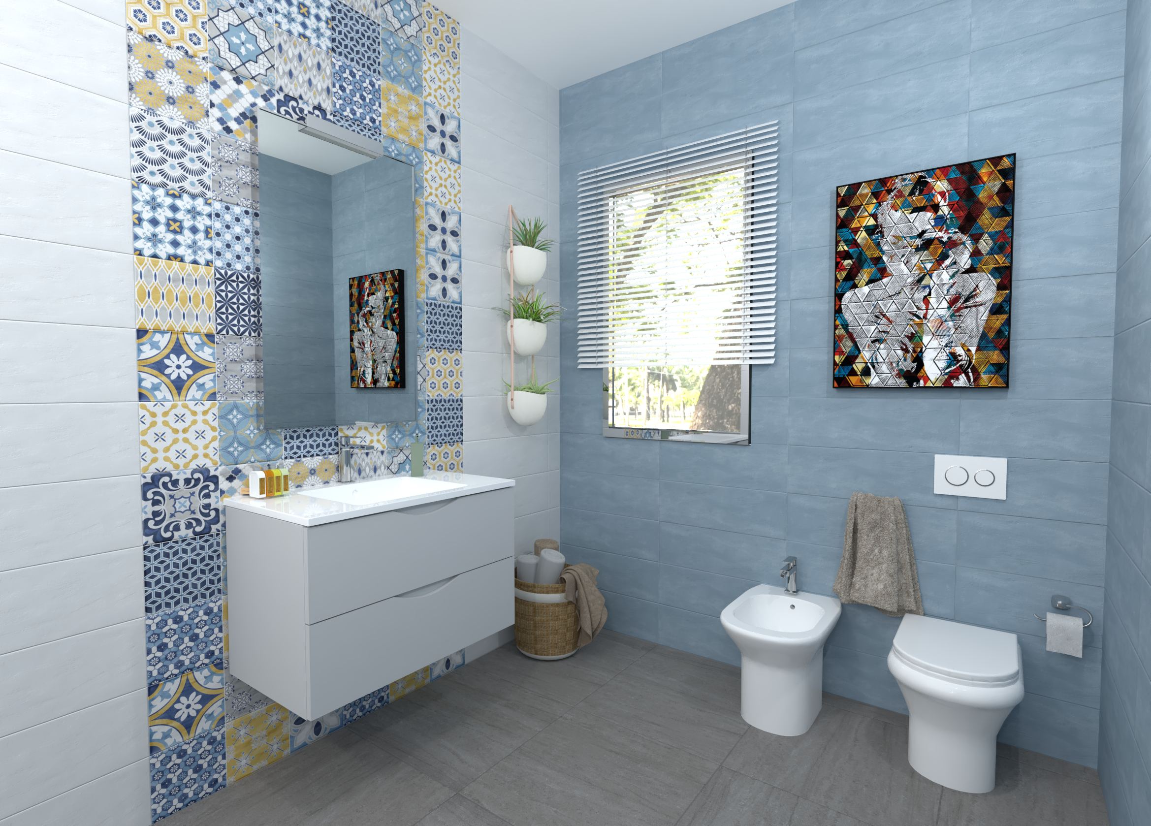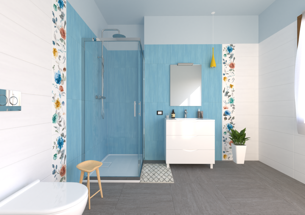 Proposta Rainbow Blu (simulazione su bagno 3 x 2 mt)