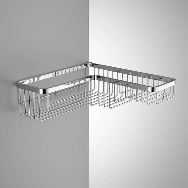 Portaoggetti doccia a muro Colombo Design Angolari, forma angolare, in ottone, colore cromo, fissaggio con tasselli fischer.