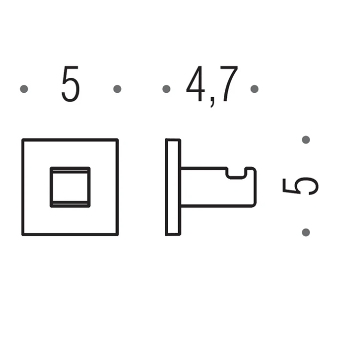 4.7 cm lunghezza, 5 cm larghezza, 5 cm altezza.