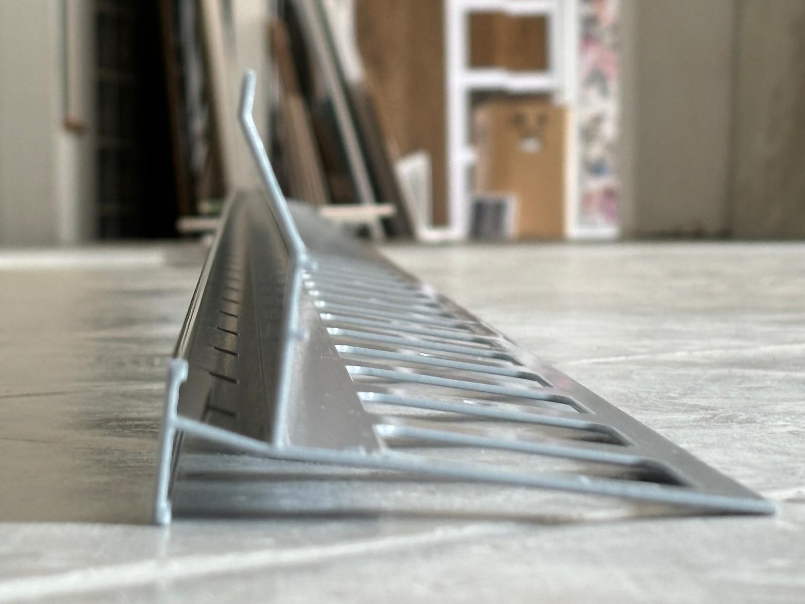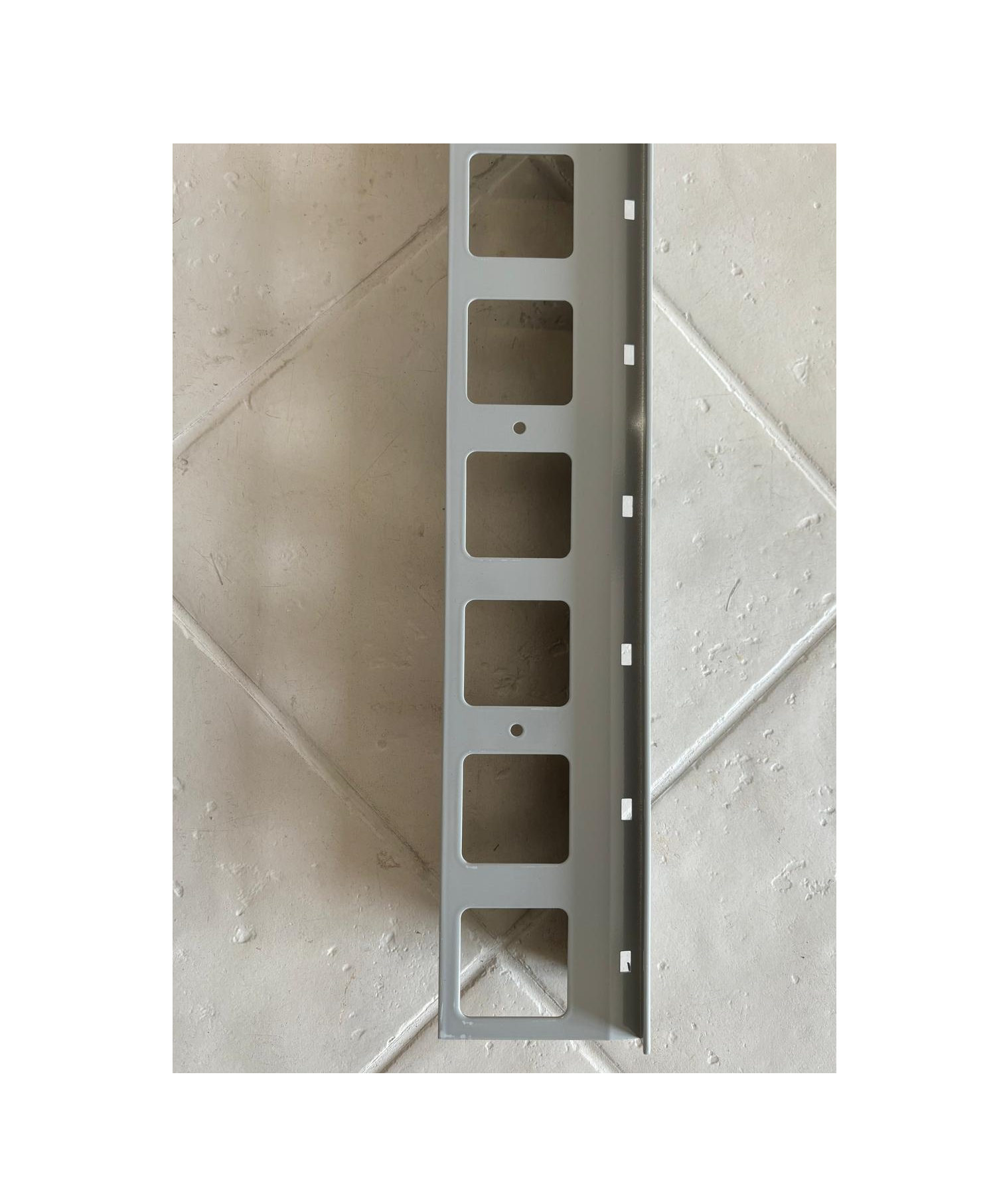 Il gocciolatoio per balcone è munito di una aletta di ancoraggio traforata che garantisce il suo fissaggio al supporto. L’aletta traforata è provvista anche di piccoli fori per un suo provvisorio fissaggio con chiodi.