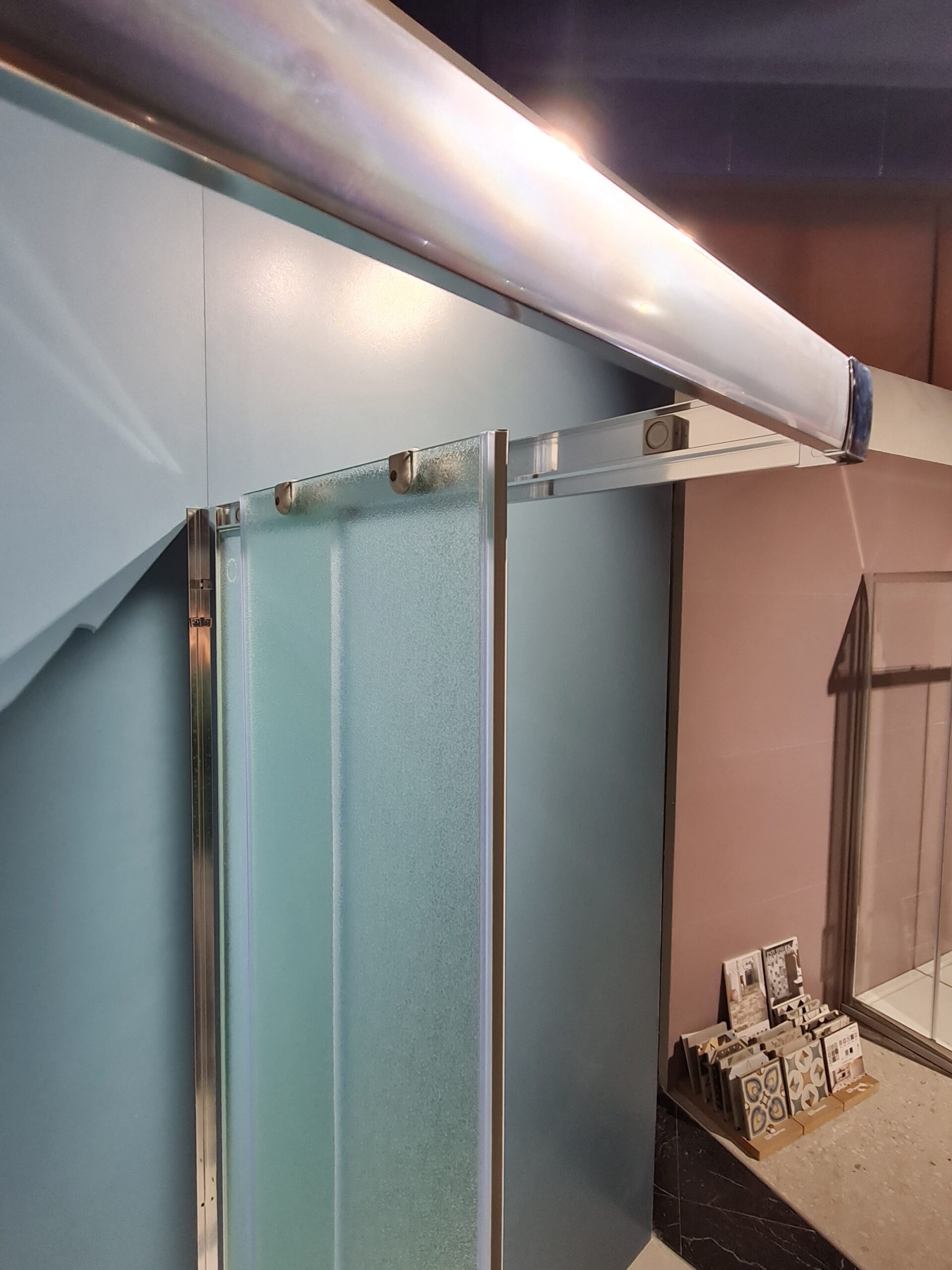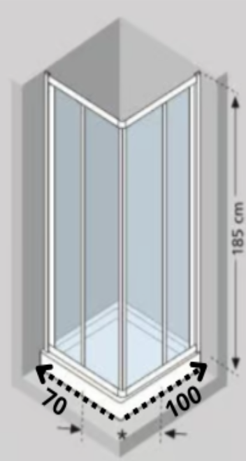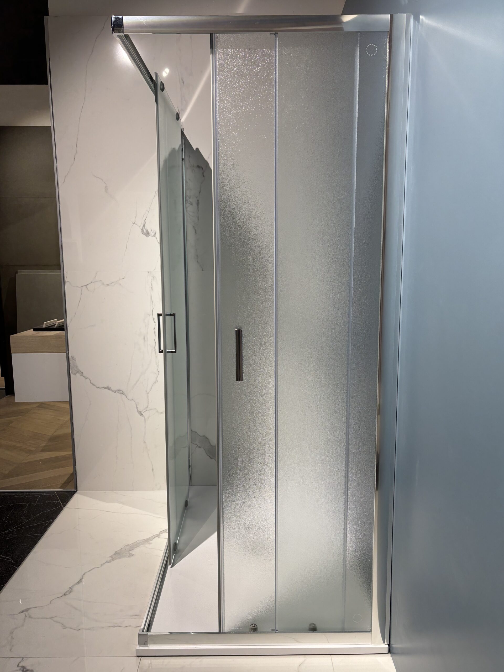 Box doccia angolare quadrato con 2 ante scorrevoli e cristallo 6 mm stampato.