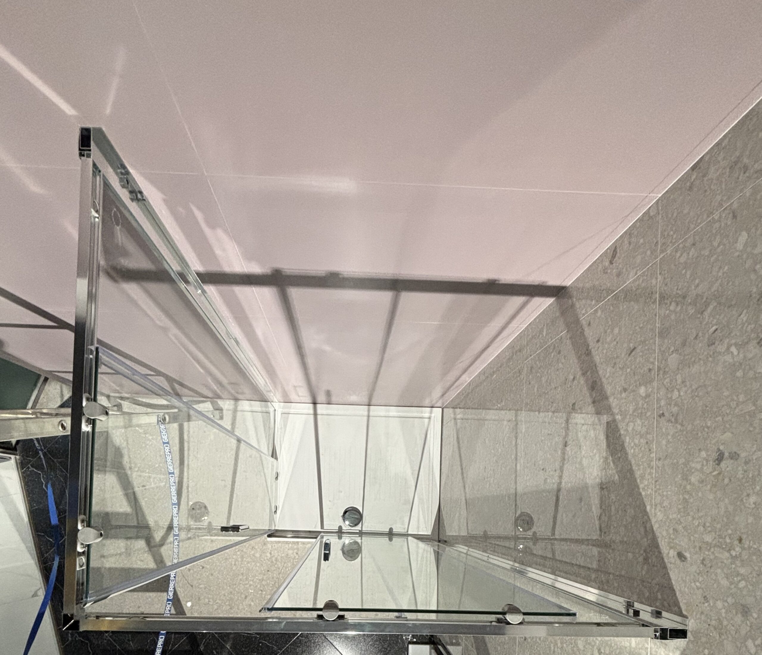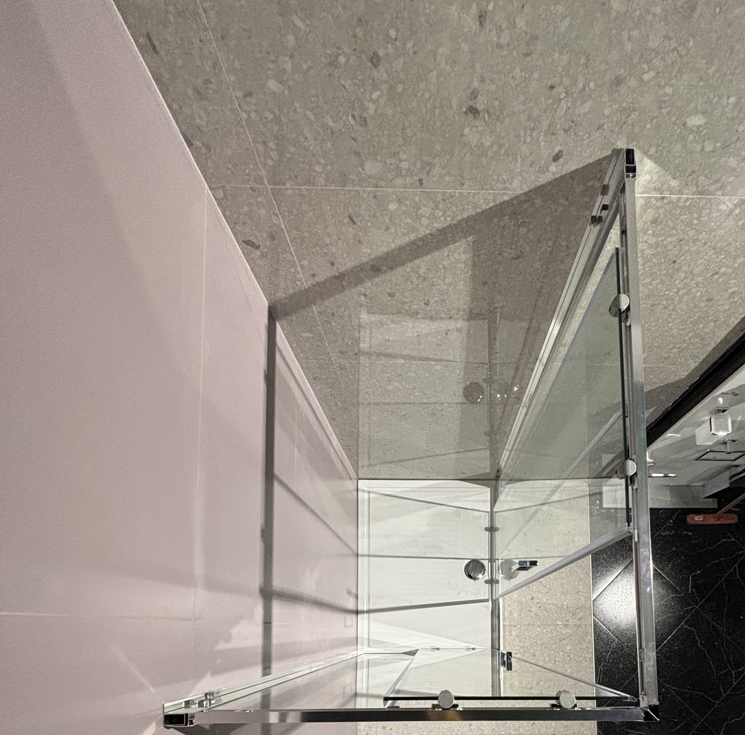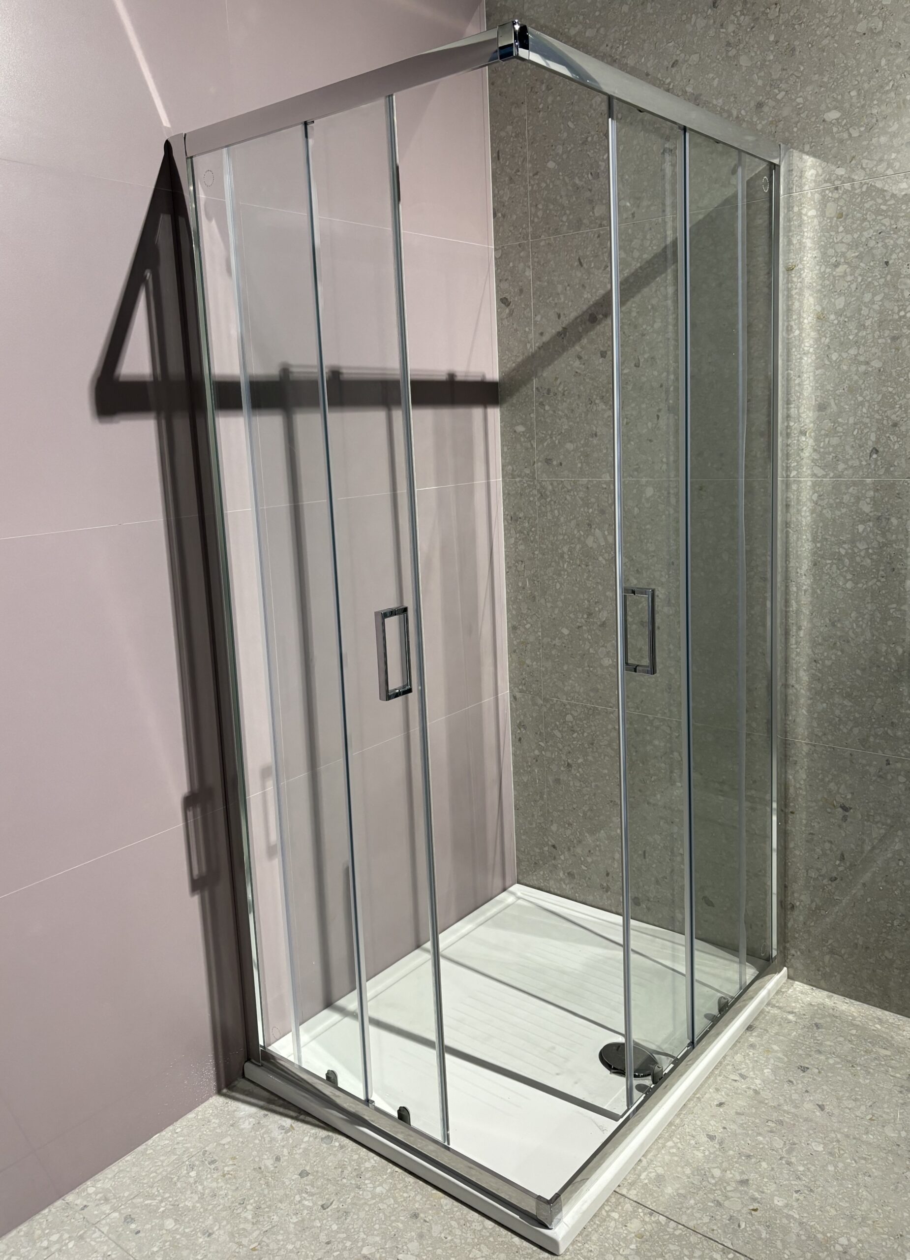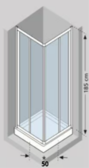 Box doccia angolare quadrato con 2 ante scorrevoli e vetro 6 mm trasparente.