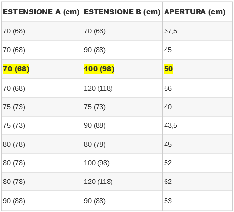 – estensibilità da 68 a 98 cm
