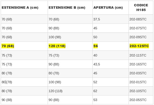 – estensibilità da 68 a 118 cm