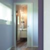 Adatto a tutti gli ambienti della casa, questo sistema permette di alloggiare una porta a scomparsa ad anta singola. Ideale per bagni e ripostigli, ma anche per cabine armadio o disimpegni perché ottimizza i volumi disponibili, anche quando le metrature sono limitate.