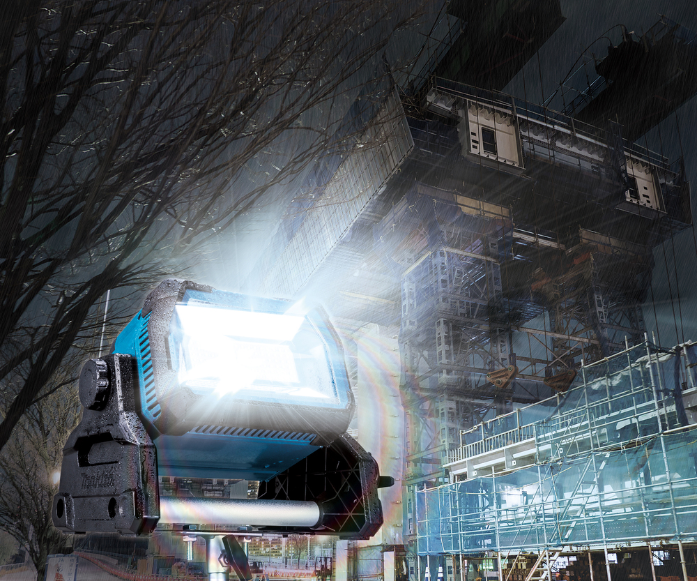 Faro da cantiere ad alta efficienza dotato di 96 LED, tre modalità di illuminazione, compatibile con batterie LXT® da 14,4V e 18V o AC 230V. È disponibile anche un supporto Makita per una o due luci (venduto separatamente). L’autonomia con due batterie da 6,0 Ah è di ca. 1,7 ore di illuminazione continua in modalità alta. Batteria e caricabatterie non inclusi.