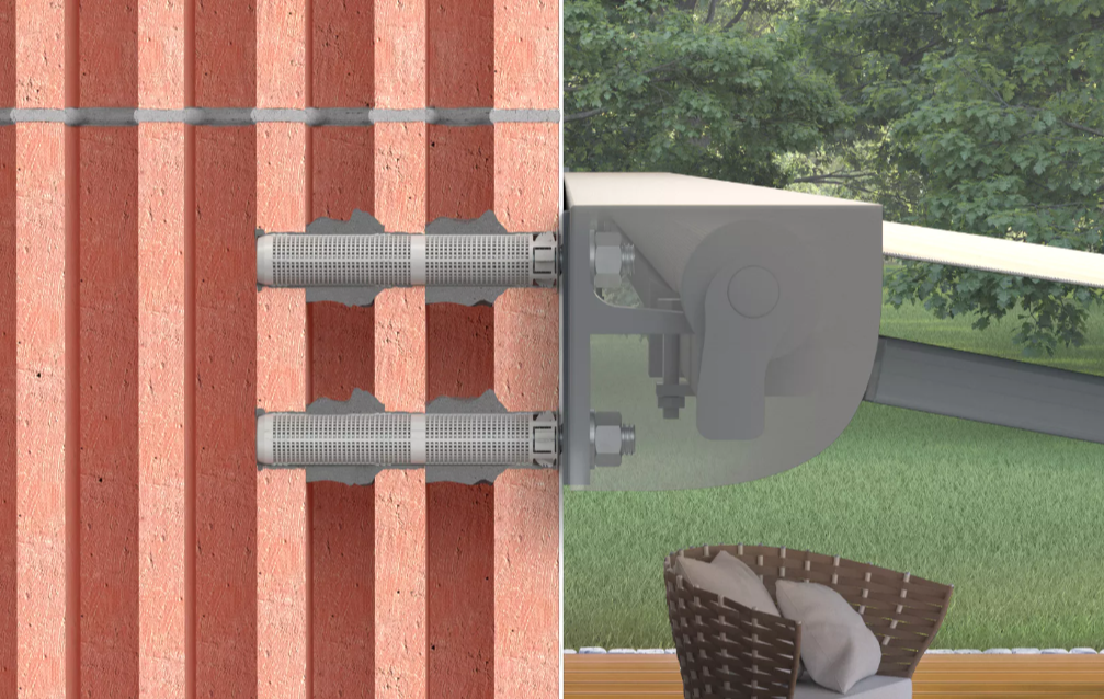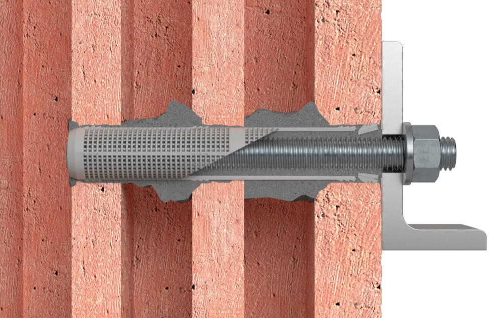 - Il tassello a rete consente la realizzazione di un sottosquadro ottimale in muratura di mattoni semipieni.