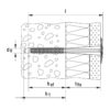 EAN 8001132047231 Lunghezza utile max tfix 50 [mm] Lunghezza ancorante l 81 [mm] Profondità foro min h1 40 [mm] Profondità di ancoraggio min hnom (hv) 30 [mm] ⌀ disco 40 [mm] Diametro foro d0 8 [mm]