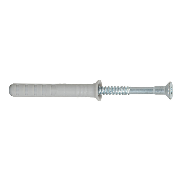 Il fissaggio a percussione fischer N-S con testa svasata è costituito da un tassello in nylon di alta qualità e una vite a chiodo in acciaio zincato. Questi sono già premontati per una veloce applicazione. L’installazione passante del fissaggio a percussione attraverso l’oggetto da fissare consente di risparmiare tempo. Quando si inserisce la vite a chiodo il tassello si espande e si ancora saldamente nel materiale di supporto. Il fissaggio a percussione N-S con testa svasata è ideale per fissare strutture leggere in legno in tutti i materiali di supporto in ambienti interni.