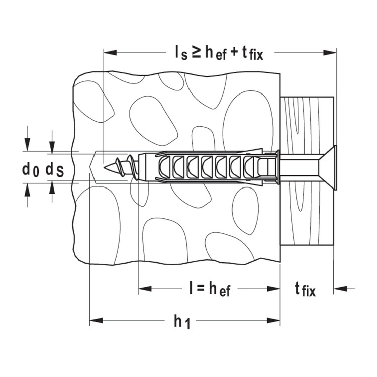 EAN 8001132700259 Viti da legno e truciolari ds / ds x ls 6 x 60 [mm] Spessore fissabile max t fix 10 [mm] Profondità foro min h1 70 [mm] Diametro foro d0 10 [mm] Lunghezza fissaggio l 50 [mm]