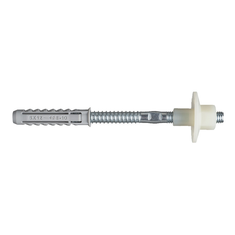 | Contenuto per busta in plastica | 2 tasselli SX 12, 2 viti doppio filetto M 10 x 120, 2 boccole nylon BU M 10 | [pz] | |