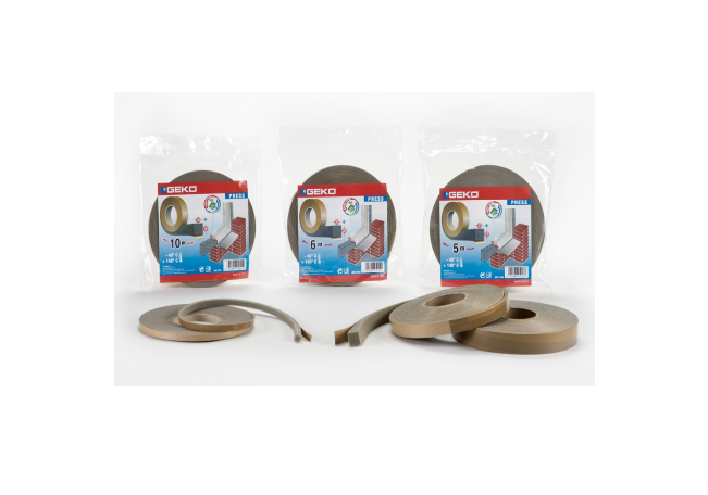 - Guarnizione adesiva precompressa realizzata in poliuretano espanso flessibile.
