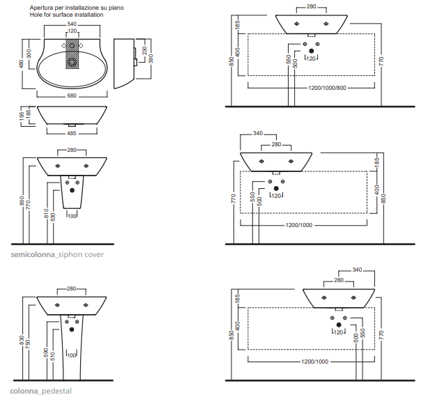 Integrabili con colonna, semicolonna oppure con sifone estetico.