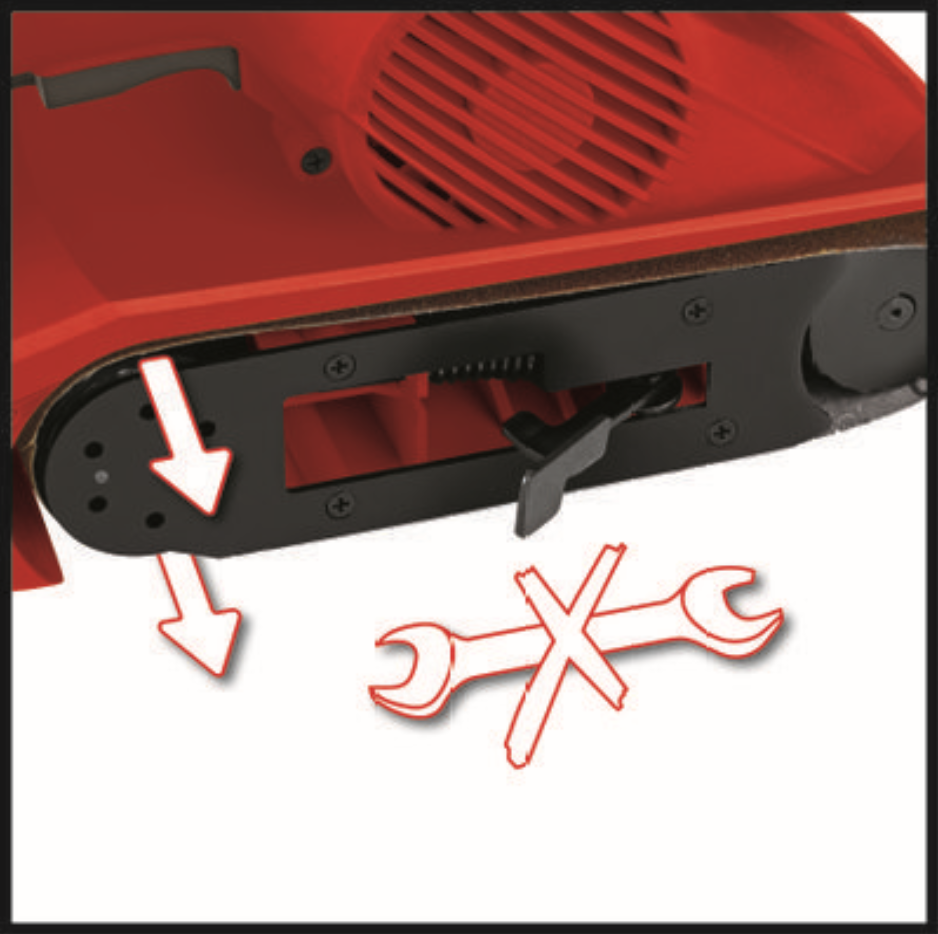 Il nastro può essere regolato con precisione in modo ottimale mediante il dispositivo apposito di messa a punto ed il nastro abrasivo viene sostituito in un istante.