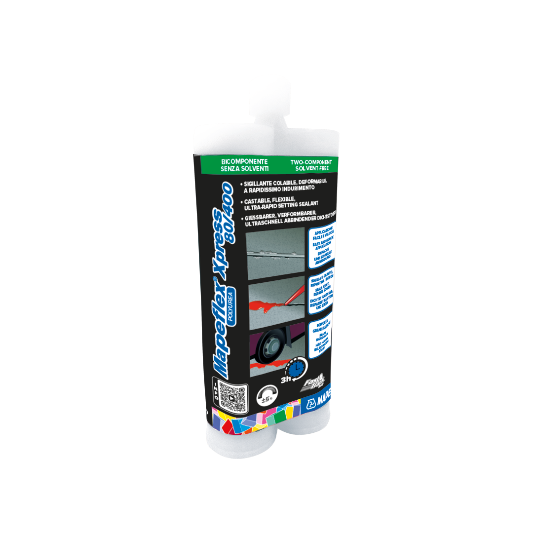 - Mapeflex Xpress 80/400 è un sigillante deformabile ad alto modulo elastico e rapidissimo indurimento, per la sigillatura di giunti edili e fessure orizzontali, soggetti a limitati movimenti e intensa sollecitazione meccanica o traffico veicolare pesante. Mapeflex Xpress 80/400 è specifico per sigillare giunti e fessure orizzontali in ambienti ove è necessario limitare al minimo l’interruzione dell’esercizio della pavimentazione per l’esecuzione dei lavori.
