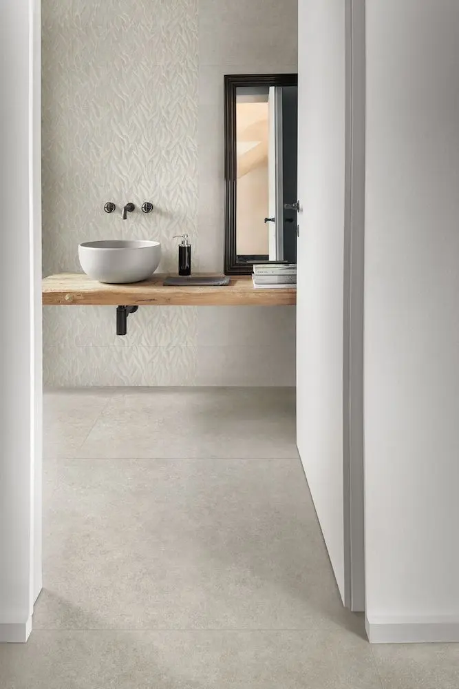 - Bianco è il colore della serie in gres porcellanato ROOM WALL di Marazzi in questo caso nel formato 30×90 cm con spessore 10 mm e finitura Matt.