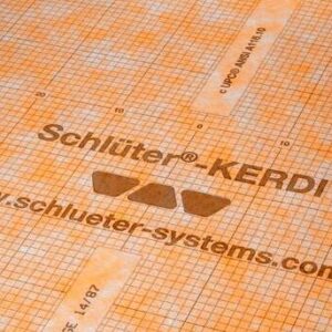 - Schlüter®-KERDI è una guaina impermeabilizzante in polietilene morbido, con capacità di “crack bridging” (ponte sulle crepe), provvista su entrambi i lati di uno speciale tessuto feltrato che ne garantisce la presa con il collante.