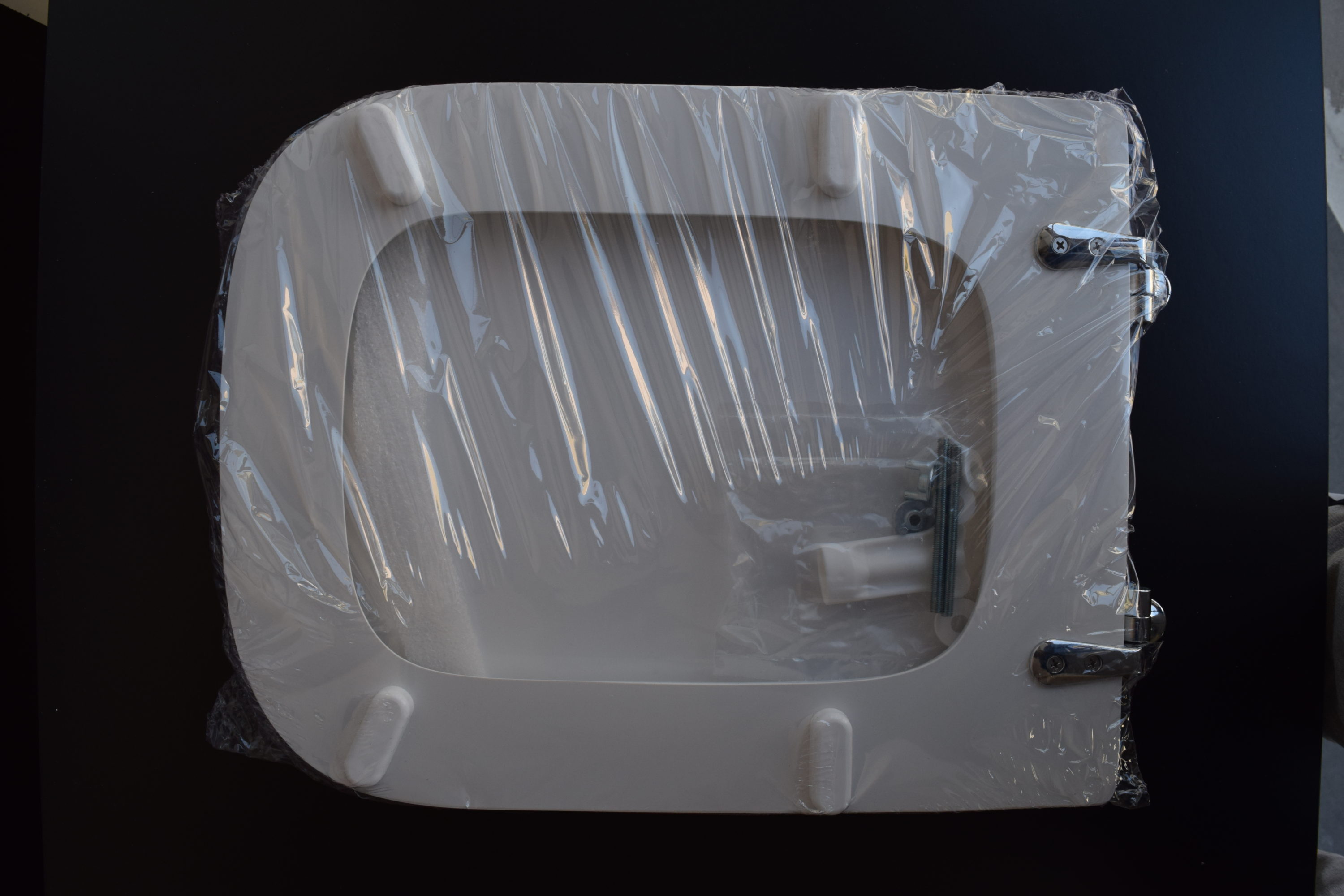 Copriwater in resina “RPC” realizzato con un inserto in legno truciolare pressato di 12 mm, rivestito di resina poliestere liquida per circa 3 mm, sottoposto ad un processo che lo rende immune all’ingiallimento, all’usura e ai liquidi moderatamente aggressivi.