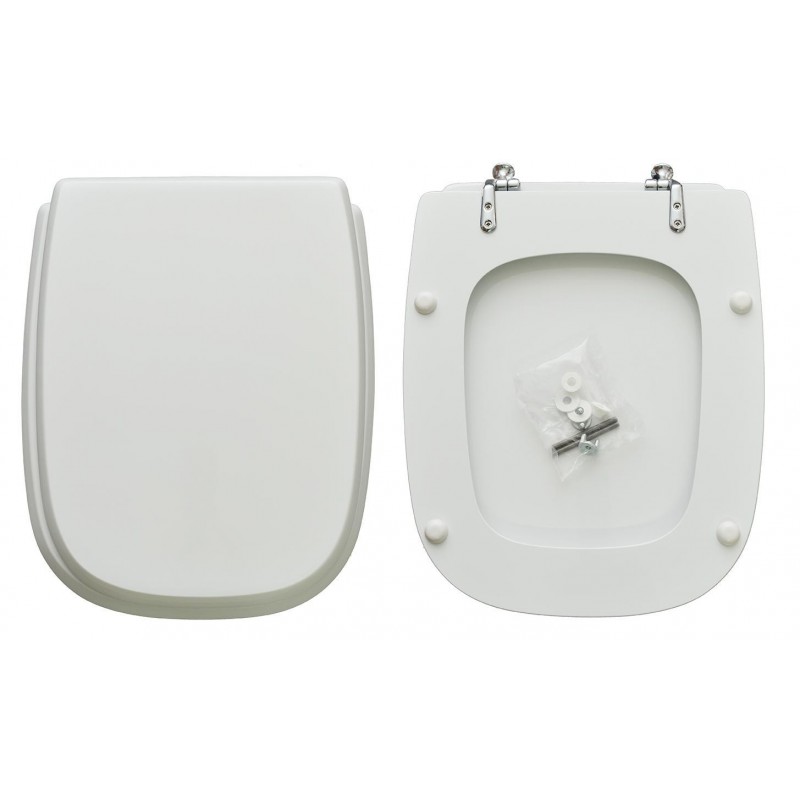 - Copriwater dedicato del modello FANTASIA 2 marca POZZI GINORI; in legno lavorato ricoperto di resina poliestere colata e con spessore non inferiore a 4mm colore bianco, cerniera cromata.