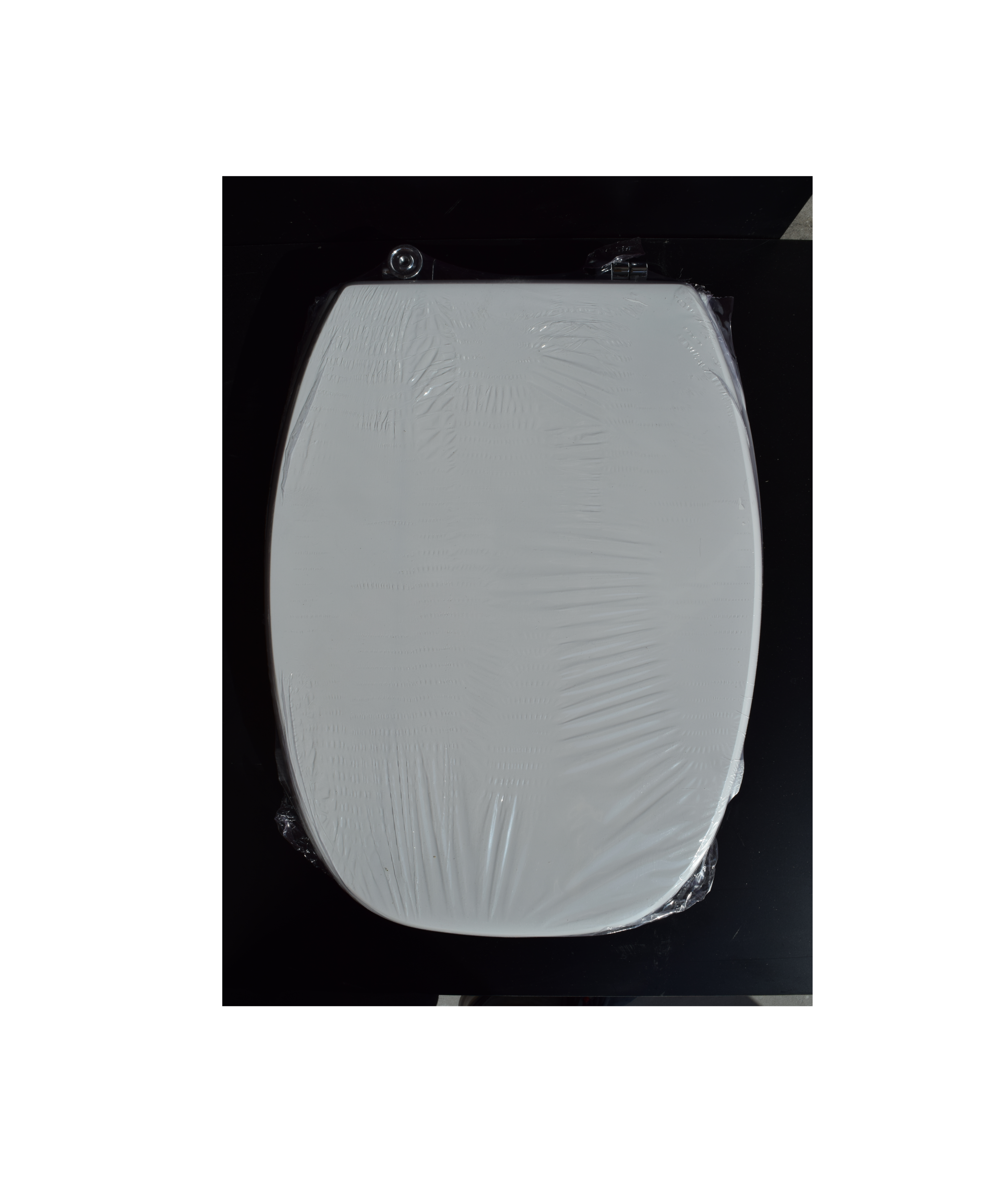 Copriwater in resina “RPC” realizzato con un inserto in legno truciolare pressato di 12 mm, rivestito di resina poliestere liquida per circa 3 mm, sottoposto ad un processo che lo rende immune all’ingiallimento, all’usura e ai liquidi moderatamente aggressivi.