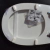 Copriwater in resina “RPC” realizzato con un inserto in legno truciolare pressato di 12 mm, rivestito di resina poliestere liquida per circa 3 mm, sottoposto ad un processo che lo rende immune all’ingiallimento, all’usura e ai liquidi moderatamente aggressivi.