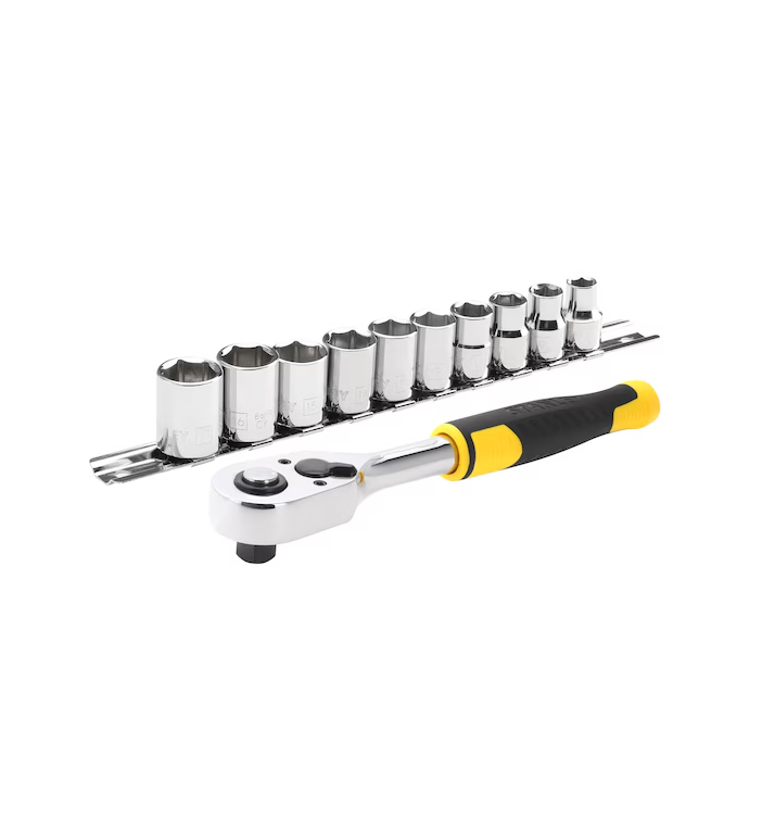 - Contenuto: 1 cricchetto att.3/8″, 10 chiavi a bussola poligonali att. 3/8″(8-9-10-11-12-13-14-15-16-17 mm)