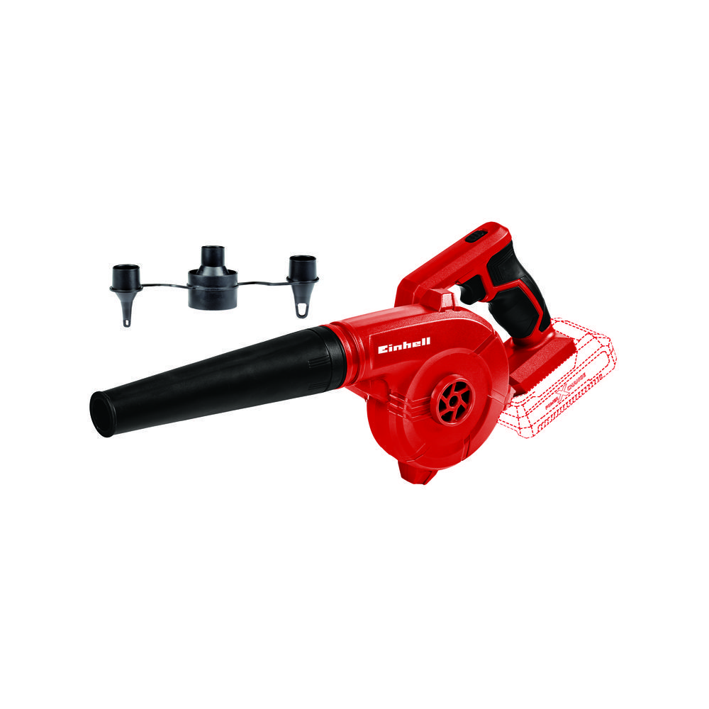 Il soffiatore a batteria Einhell TE-CB 18/78 Li – Solo mette il turbo alla pulizia. Grazie ai tre adattatori di gonfiaggio inclusi, l’apparecchio è estremamente versatile sia in cantiere sia in officina.