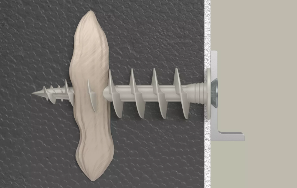 - Il fissaggio senza ponte termico di carichi medi su facciate con isolamento a cappotto.